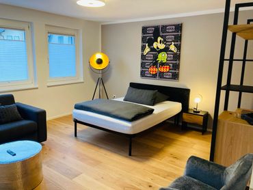 Die modernen, neu renovierten und voll ausgestatteten Apartments befinden sich zwischen den Haßbergen, dem Steigerwald und dem Fränkischen Weinland, direkt am Main.